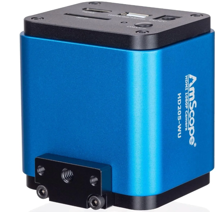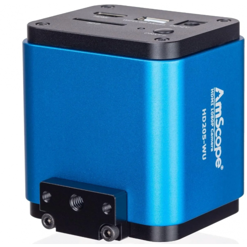 The HD-205-WU is an HDMI-capable digital camera, delivering 1080p video up to 60fps, and 5MP still images. The highly-sensitive digital sensor makes this camera ideal for low-light applications, including dark-field and fluorescenceThe HD-205-WU is an HDMI-capable digital camera, delivering 1080p video up to 60fps, and 5MP still images. The highly-sensitive digital sensor makes this camera ideal for low-light applications, including dark-field and fluorescence. Able to be used as a standalone recording device using Secure Digital memory, or as a WiFi camera on a networked computer, this is an extremely flexible imaging solution. The industry-standard C-mount design allows this camera to be connected directly to C-mount photo-ports, or used in conjunction with an array of lenses and adapters to mount to virtually any popular microscope line.