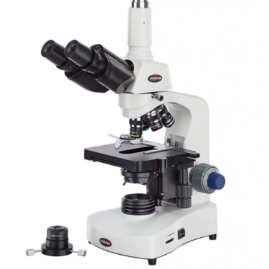The T340-LED trinocular compound microscope is designed for educational and professional use. The medium-sized profile offers streamlined ergonomics with plenty of working room. The heavy-duty metal build and enamel coating will last for many years through rigorous use.