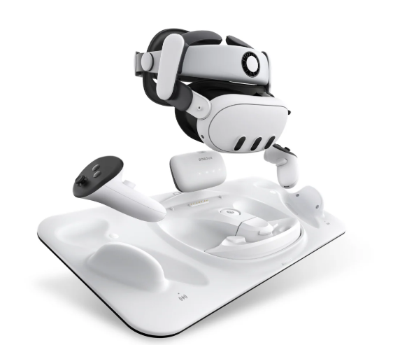 • Charges Quest 3 headset, controllers, and B100 battery simultaneously